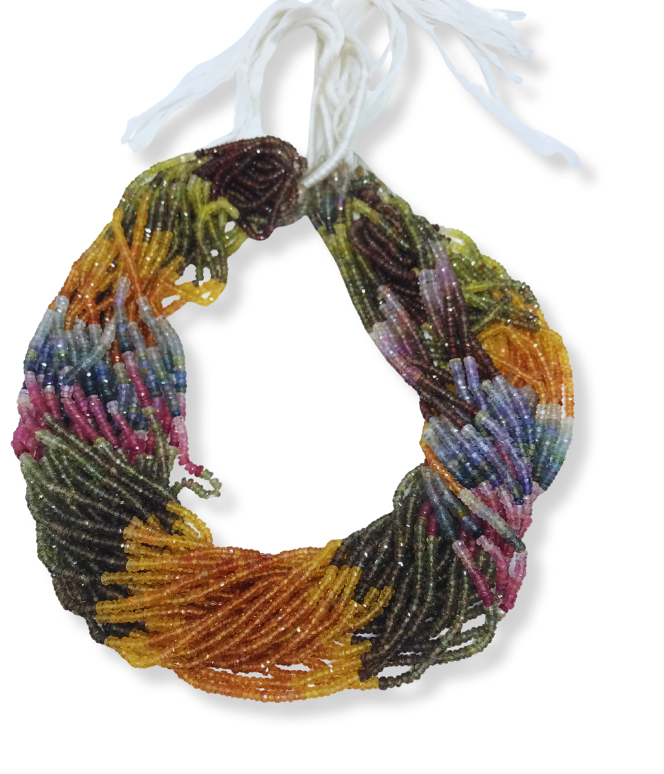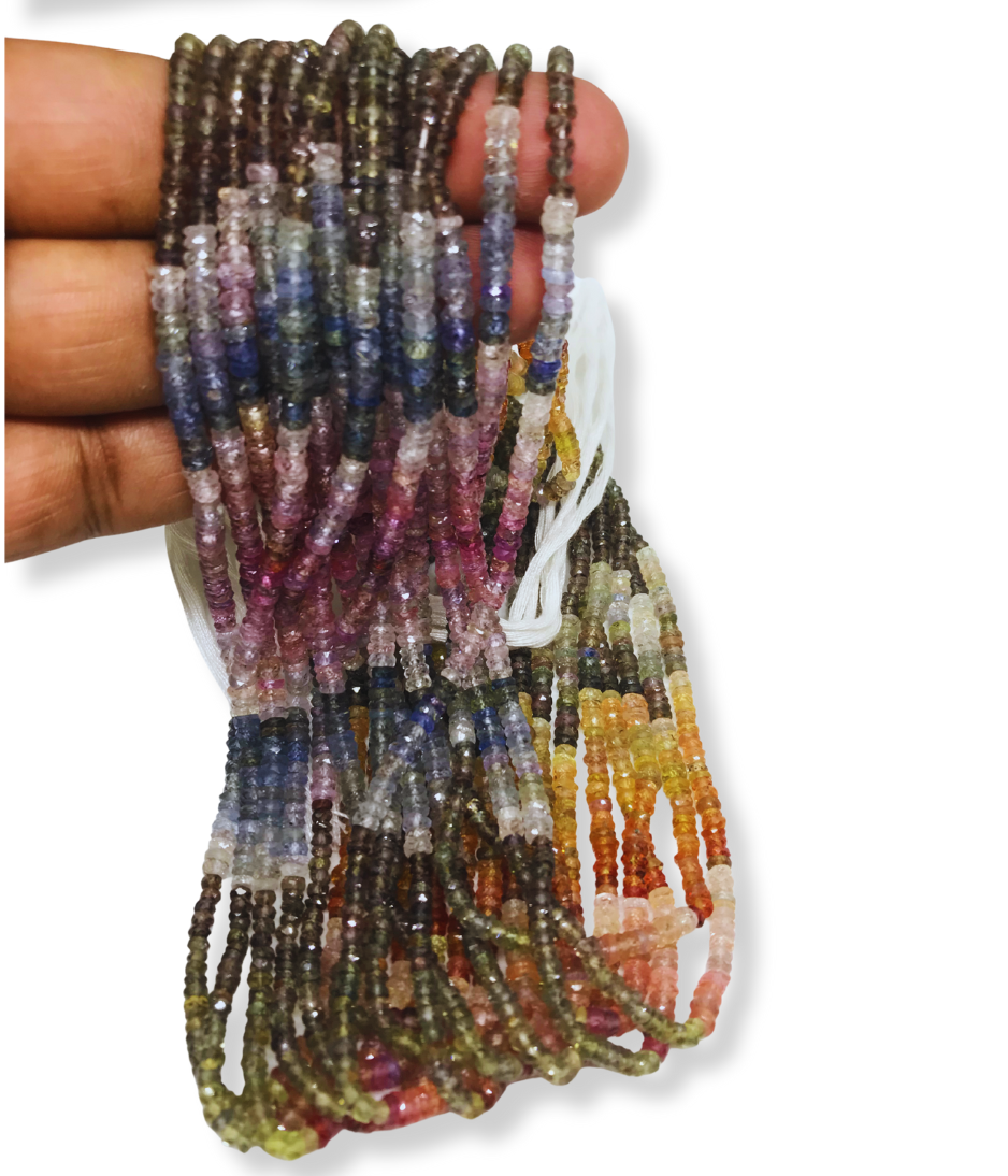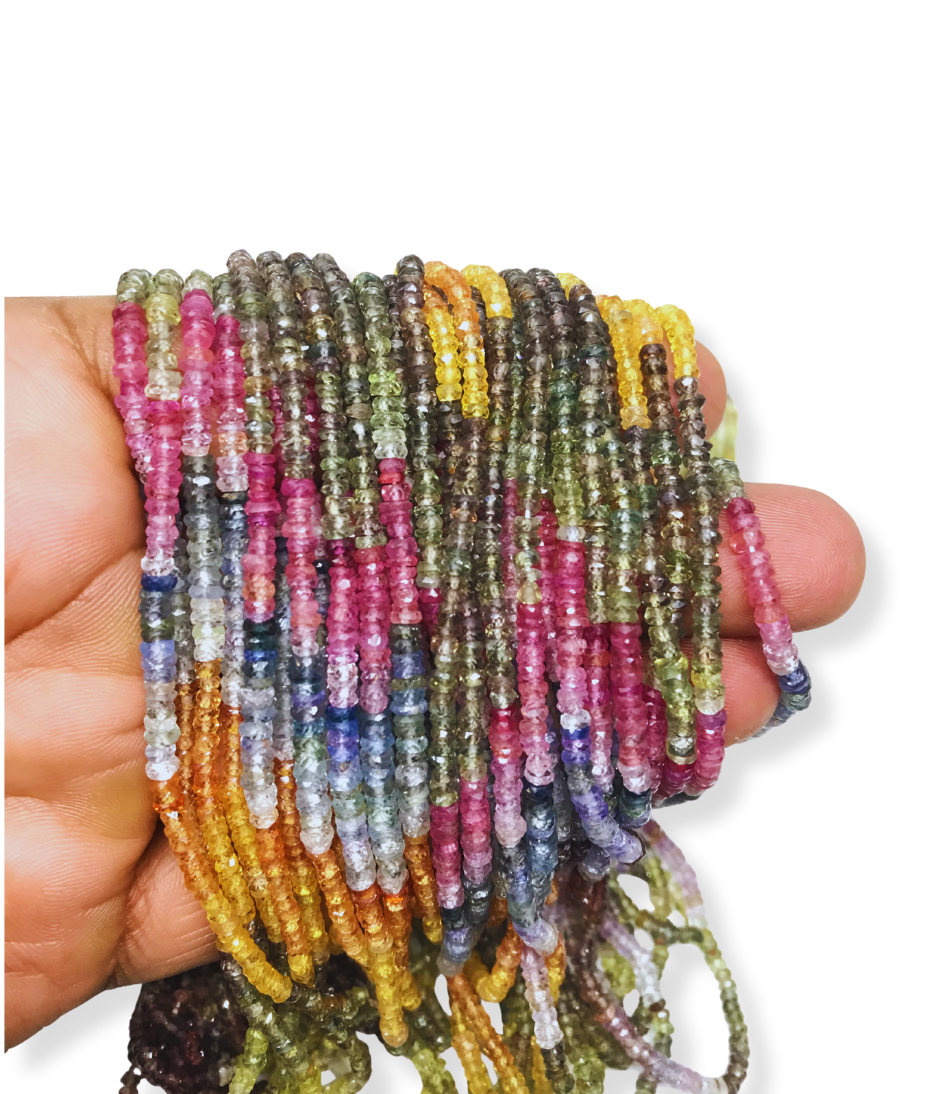 Multi Sapphire Beads offer a stunning palette of natural colours — from classic royal blue to soft pinks, golden yellows, forest greens, and even delicate lilacs. Each strand is a unique blend of these precious hues, making it perfect for creating vibrant, high-end jewellery pieces.