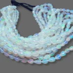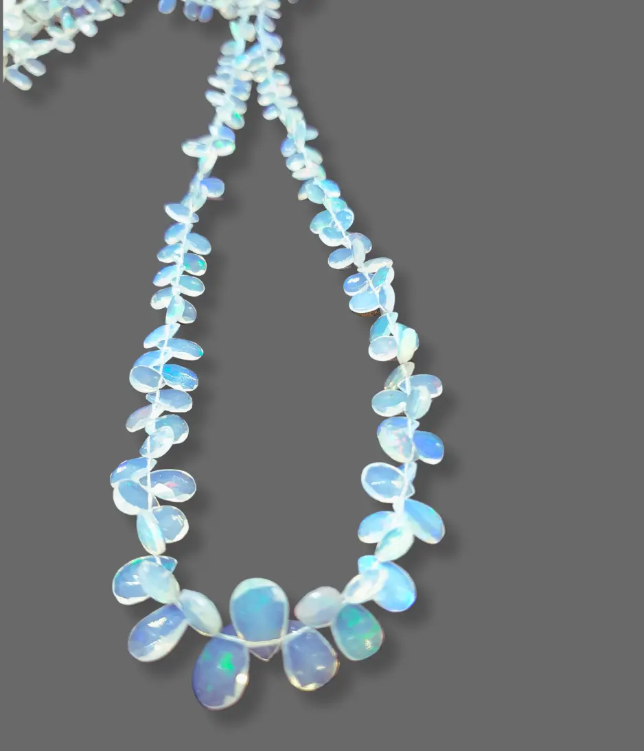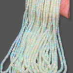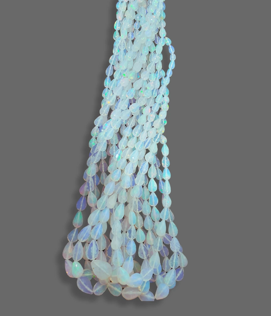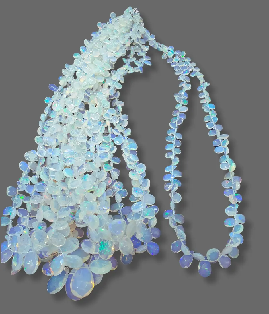 Ethiopian opal beads Known for their vibrant play of colour, these natural gemstones reveal flashes of red, green, orange, and blue that shimmer with every movement. Each bead is carefully cut and polished to showcase its unique fire, making every strand one-of-a-kind.