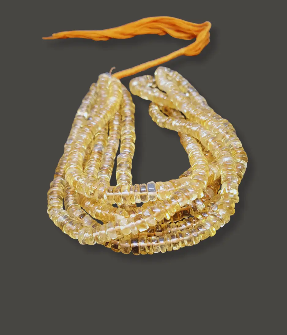 Bring warmth and radiant energy into your creations with Citrine Tyre Beads. These beads are carved in a sleek tyre shape, offering a unique texture that adds depth and sophistication to any jewellery design.