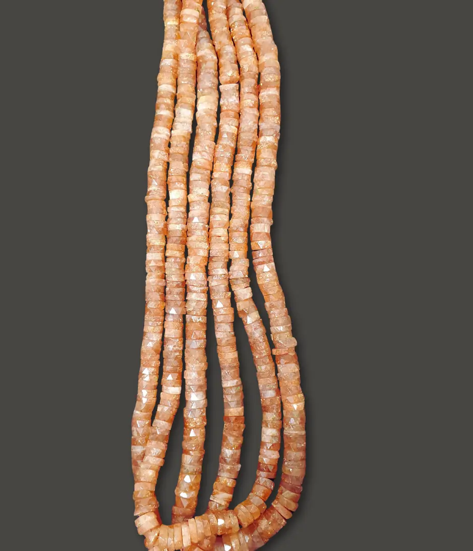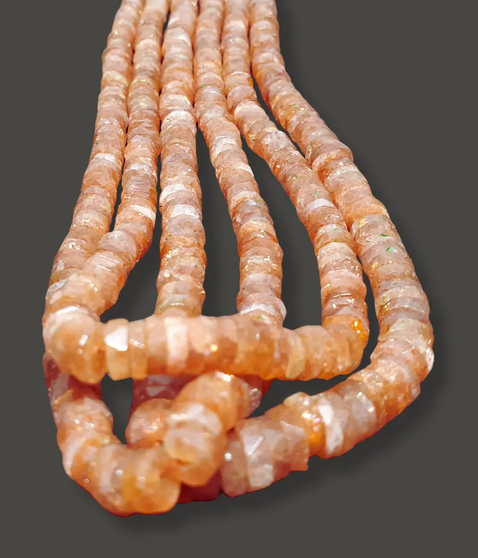 Add a radiant sparkle to your jewellery designs with Sunstone Faceted Tyre Beads. Known for their warm, sun-kissed glow and shimmering aventurescence, these beads dazzle with flashes of gold, orange, and copper tones that dance beautifully under light.