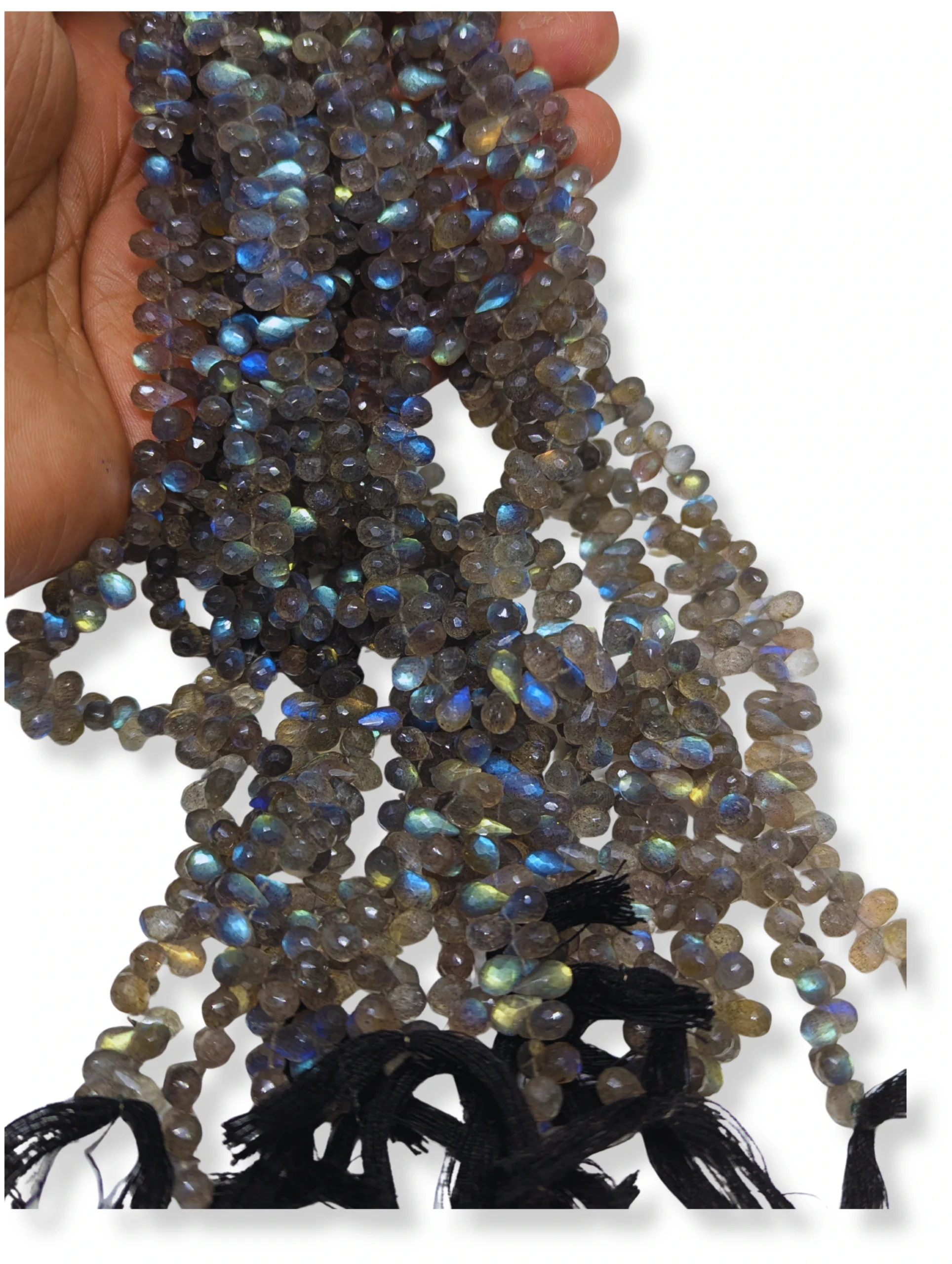 Illuminate your designs with the mystical beauty of labradorite drop beads.