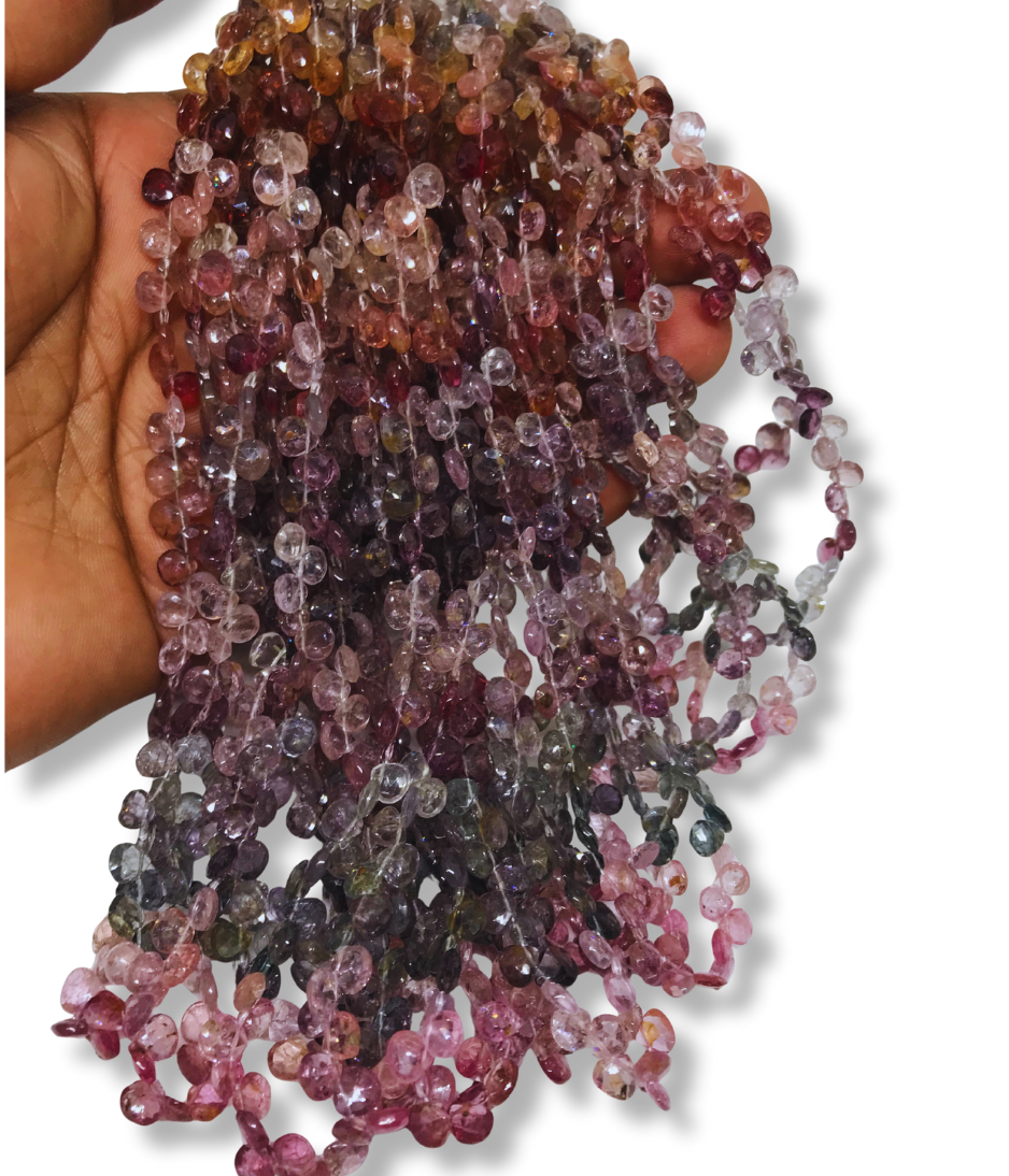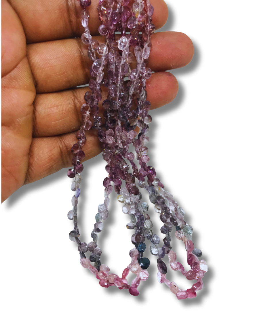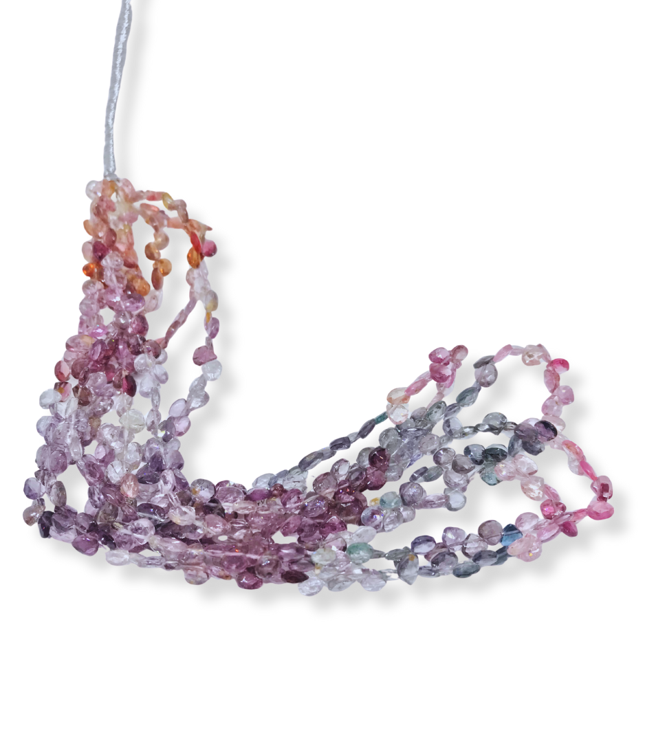 Bring vibrant colour and natural elegance to your creations with our Multi Spinel Beads. These exquisite gemstones showcase a rich mix of natural hues — from deep plums and smoky greys to vivid pinks, oranges, and steely blues — making each strand a stunning celebration of colour and light.